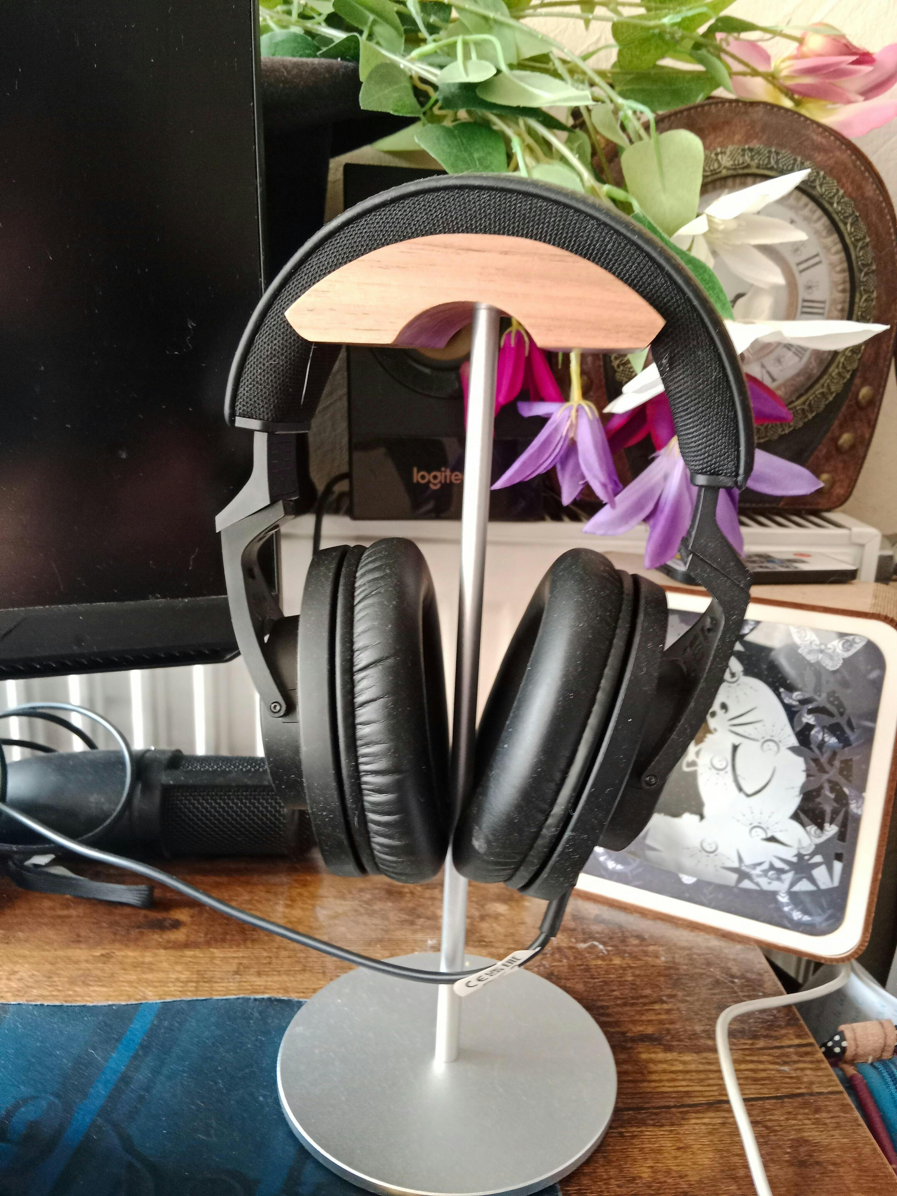 Designed for over-the-ear headphones, it provides optimal support without exerting pressure. The weighted metal base ensures stability, even on smooth surfaces. The sanded and rounded wooden arch comfortably accommodates even the widest headbands.